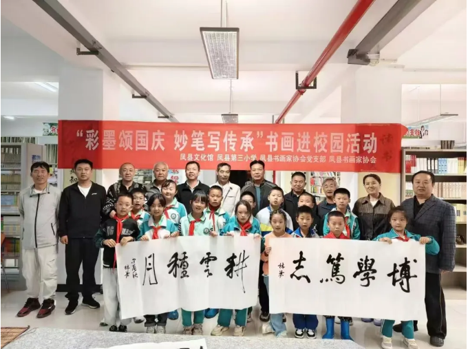 书画艺术是中华民族传统文化的瑰宝,其独特的艺术魅力承载着中华民族的文化基因。为弘扬中华优秀传统文化,提升学生的艺术素养和审美能力,9月29日下午,由凤县文化馆、凤县第三小学、凤县书画家协会党支部、凤县书画家协会组织我县文艺工作者走进凤县第三小学,开展“彩墨颂国庆 妙笔写传承”书画进校园活动,庆祝新中国成立75周年。 活动以讲座、笔会、作品捐赠等形式进行。书画家们一边创作,一边解答学生们的问题,为师生们上了一堂生动、精彩的传统文化课,让他们更加直观、深刻体会到书画艺术的魅力和中华民族优秀传统文化的博大精深。 本次活动,是社会各界和学校联手共同践行文化自信的实践,把对伟大祖国华诞的祝福和对学生们的希望寄托于书画作品中,以文化人,让中国优秀文化在校园中传承,营造了学校翰墨溢彩的书香环境,对促进学生的全面发展起到推动作用。 |